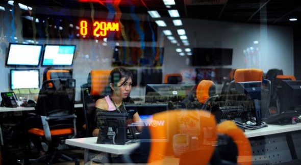 People Support workers in Makati City, near Manila. About 400,000 Filipinos work in call centers, roughly 50,000 more than in India.