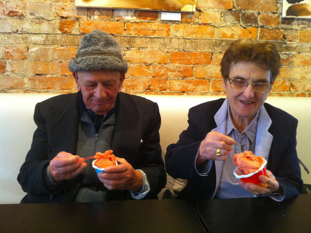 A few days ago, Giuseppina, now 81, and Gerardo, who’s 90, made the trip to their daughters’ new shop, G for Gelato.
