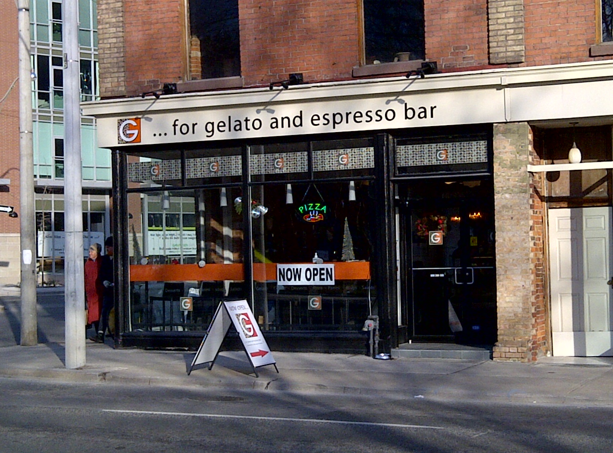 In a previous post I wrote about a university in Italy where you learn the fine art of making gelato (see Carpigiani Gelato University). By a happy coincidence, a new gelateria opened in my neighborhood called G for Gelato (south-east corner of Jarvis and Adelaide).