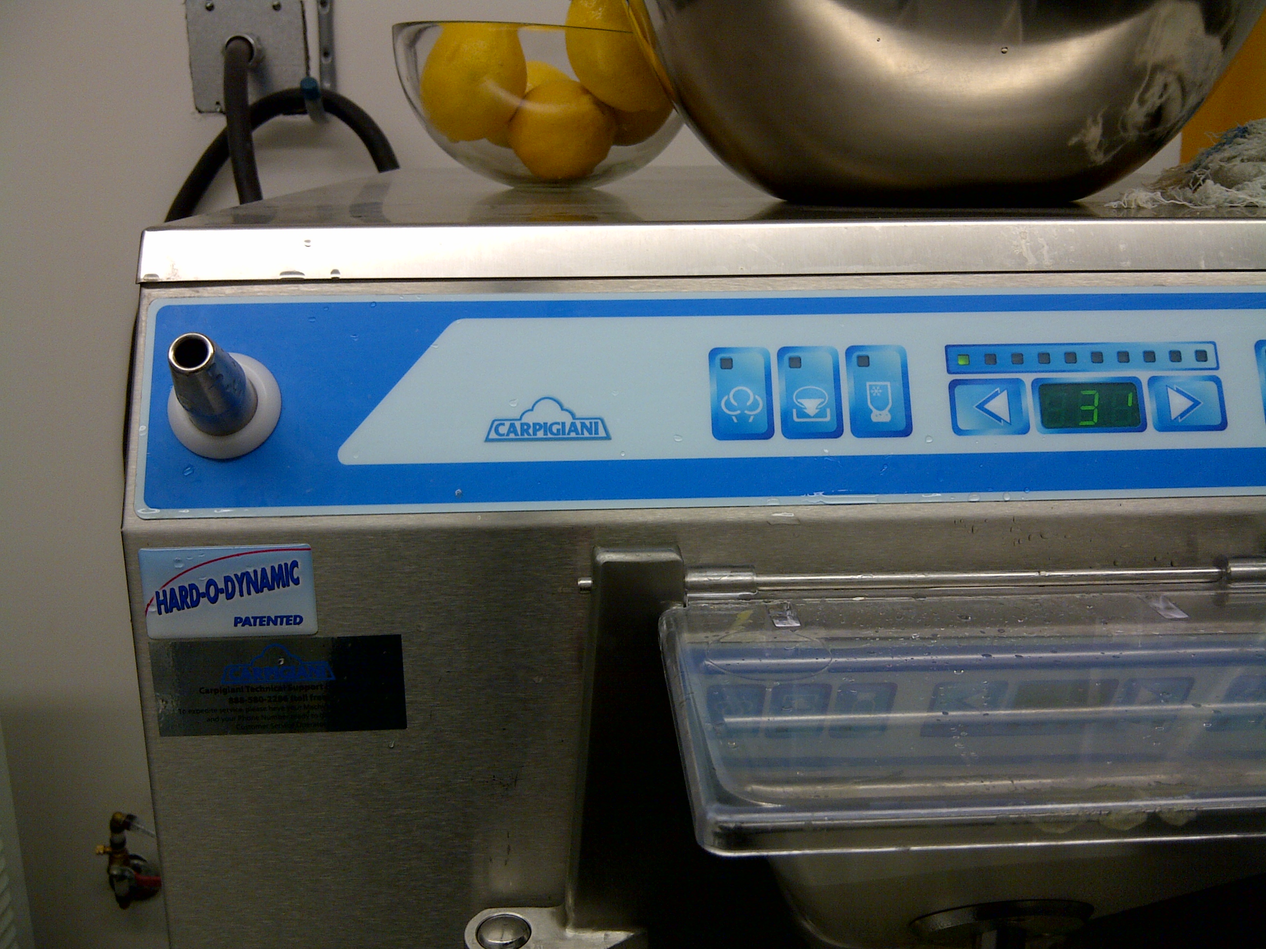 When I went in on opening day, I asked about the business, the owners are etc. I mentioned that I had written about a gelato university and one of the owners, Shawn Whelan, said that he and the three other owners had indeed attended the Carpigiani Gelato University. He took me on a tour and sure enough was a set of gleaming gelato equipment made by Carpigiani.