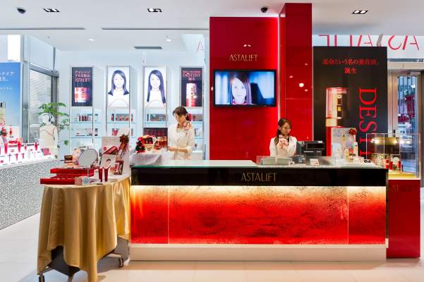 It is lunchtime in Tokyo’s expensive Ginza district and women are crowding around an all-red beauty counter in the New Melsa building. Smiling assistants in pussy-cat bows are dispensing advice and a quick swipe of the rose-scented products. Everyone is here for the same thing: Astalift, one of Japan’s top-selling anti-ageing skincare brands.