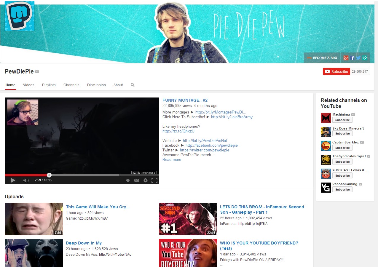 In December 2012, PewDiePie signed on with Maker Studios, a producer of online content that takes a cut of ad sales. Maker Studios—which counts on PewDiePie as its most important personality— sold itself to Walt Disney Co. earlier this year in a deal that could be worth close to $1 billion, depending on certain performance targets.